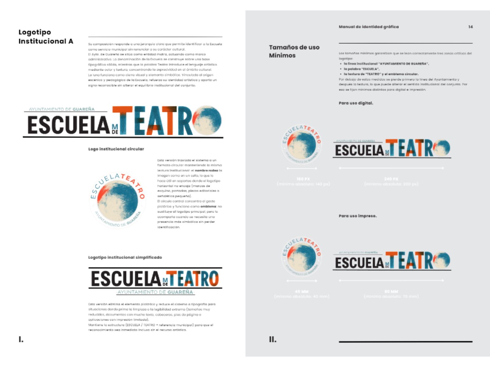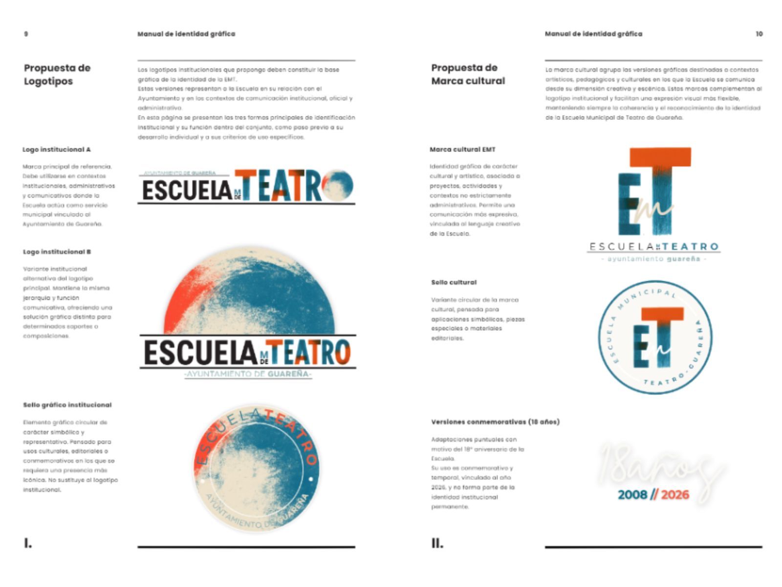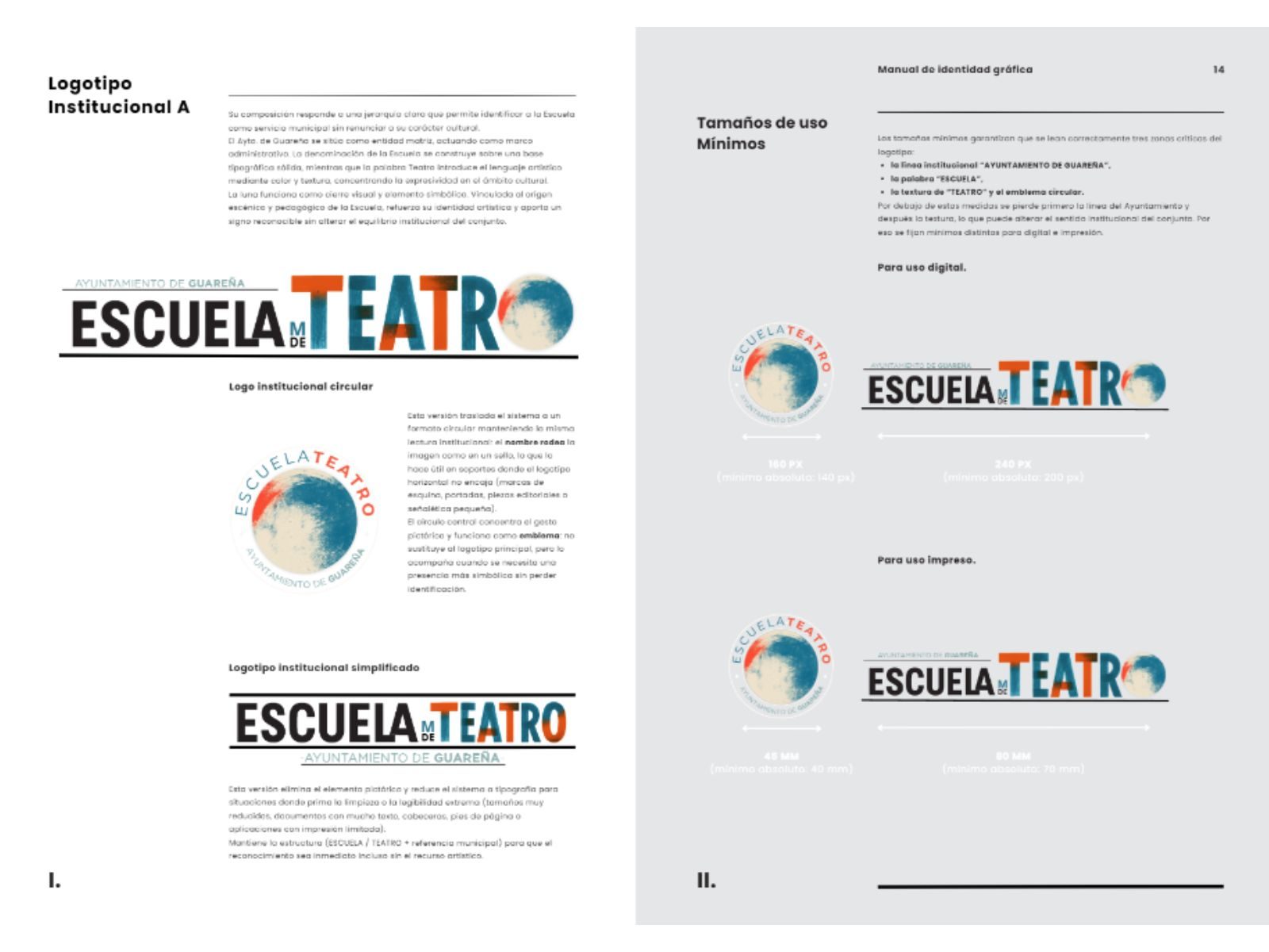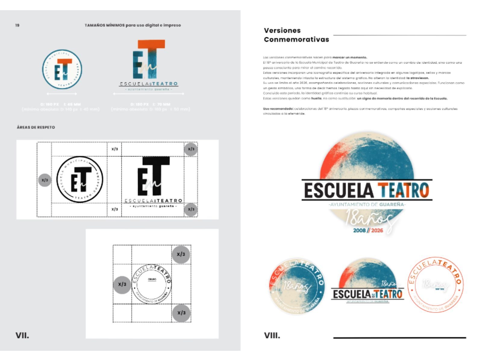 En el propio manual se señala que “la identidad gráfica no se concibe como una imagen cerrada, sino como un sistema visual estable y flexible, pensado para acompañar la actividad de la Escuela Municipal de Teatro de Guareña en sus distintos ámbitos: institucional, cultural y pedagógico”.
